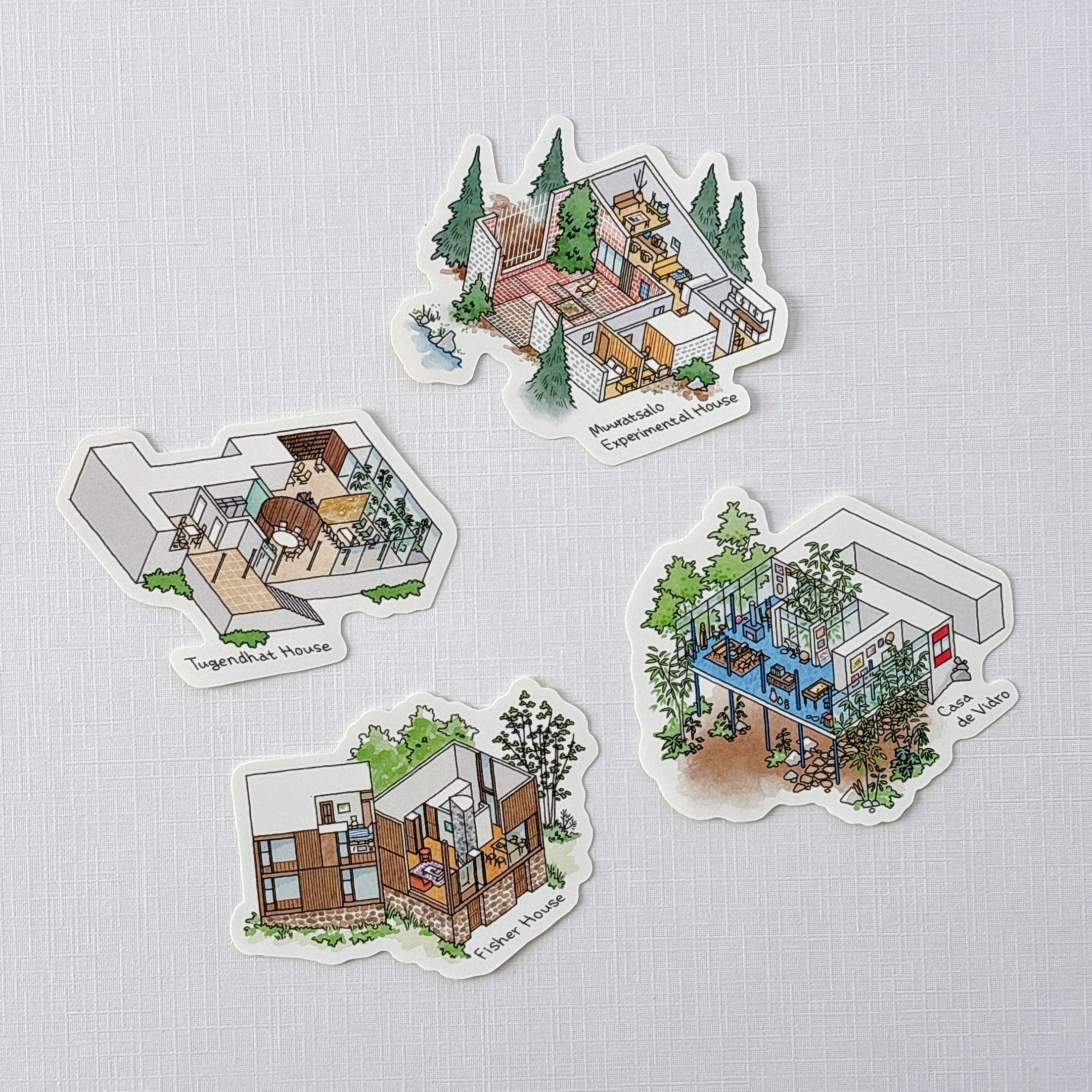 そんなわけで、見つけて2秒で購入を決めた『リビング・モダニティ 住まいの実験 1920s-1970s』展のステッカー4つ。ダイカットステッカーって大好き、超かわいい。